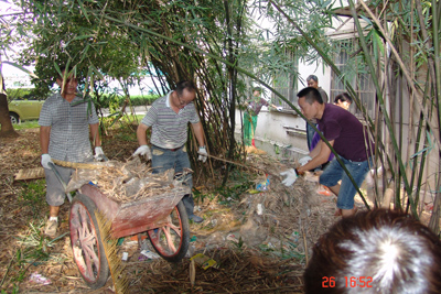 公司党员参加公司食堂后绿地的清淤除杂清理工作图七