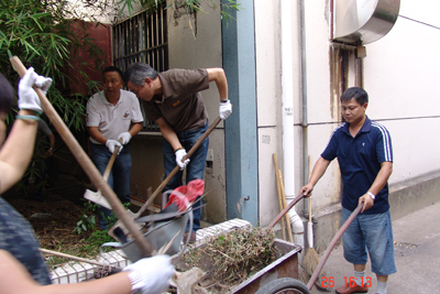公司党员参加公司食堂后绿地清理后的现场一角