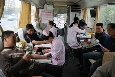 2017年3月17日上午9时许,金华市中心血站的大巴车开到我公司办公大楼门口旁,进行一年一度的公益献血活动。