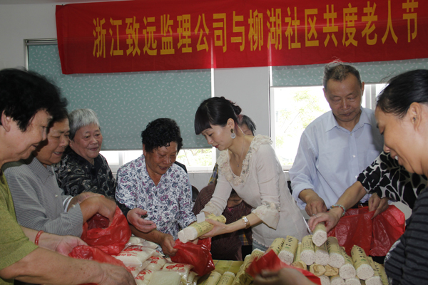 活动首先由街道领导朱主任发表对老人节的致词,并对此次活动的赞助单位致远公司表示了感谢。接着致远公司代表施琪发了言,并带去了公司领导和赵肖春董事长对老人们的问候,祝他们老人节愉快,希望老人们都能“老有所依,老有所养,老有所为,老有所学,老有所乐。”致远监理公司不仅企业要创品牌,更要在关心老年人的生活上做出表率,希望天下所有的老人们都能拥有诗中所描绘的“莫道桑榆晚,为霞尚满天”的境界。老人们对两单位开展的此次活动表示感谢,纷纷表示希望在残烛之年将尽已所能为和谐社会发光发热。
