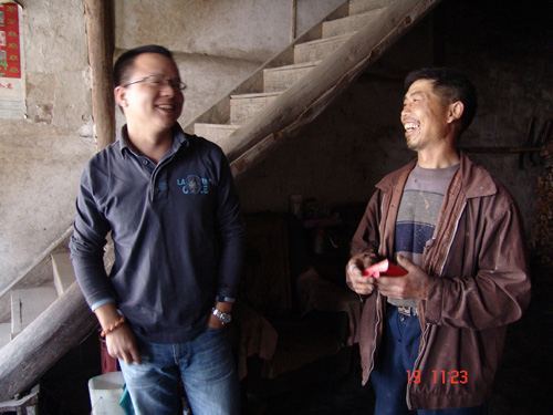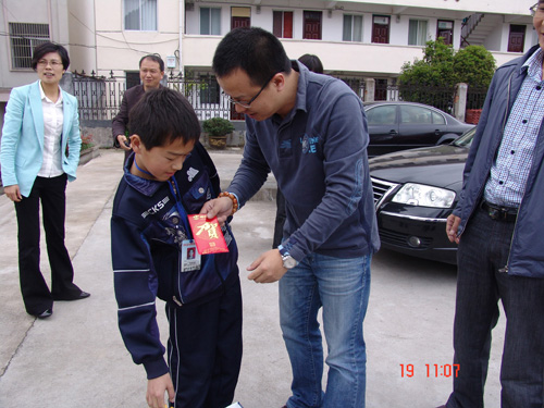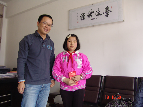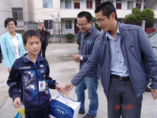 在磐安县万苍乡中心小学校长办公室,我们见到了资助生陈玲玲,已是五年级的她还是比较腼腆,不爱说话。公司领导给她送上了学习用品、食品和助学金,鼓励她好好学习,将来成为社会有用之才。当听说去年资助生吴鹏波已到尚湖中学就读初中,我们离开万苍乡中心小学驶向尚湖中学,绕过一个村,上一个坡,就到了尚湖初级中学。我们到达时,学校刚好组织初一学生在考试,经校长特许,我们约见了资助生吴鹏波同学,了解了他的学习情况和家庭生活状况,并鼓励他好好学习,争做三好学生。之后,我们目送他回到教室继续考试。听说另一名资助生袁霞斌去年考上了大学,现在杭州某高校学习。为此,我们一行特地到尚湖镇下袁村看望了袁霞斌的父亲(其母亲长期患病,未能见到),见到其生活用房还是老旧的土木房,生活条件确实比较差。我们请其父亲传达公司对袁霞斌的问候,并表示有什么困难和需求,可写信与公司联系,并留下联系电话。