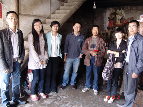 公司人员在尚湖镇下袁村袁霞斌家与资助生袁霞斌的父亲合影