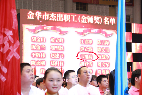 公司员工韦祖高获“金华市优秀职工(银锤奖)”称号