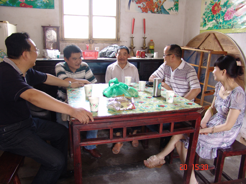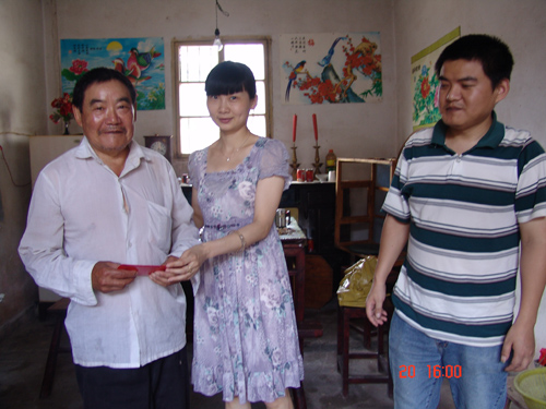 徐红桂父母家坐落于金华石门长山乡,村中古老的人民大会堂见证了长山村悠久的历史和醇朴的乡风。在徐红桂和其哥哥带领下,从乡人民大会堂前的一条弄堂走入,拐两个弯就到了。进入院门,是一个有50平米的明堂,右边是老房三间,一字排开,左边有一个柴房和一个厨房,是一个典型的江南式样院落。一见我们,憨厚的徐红桂父亲就忙着招呼我们落座,不善言辞的老人家只是一个劲的感谢公司领导的看望,感谢公司对徐红桂工作、学习、生活上的关心和帮助。