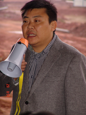 11月28日上午8时许,天空下着濛濛细雨,吴华总监带领咨询中心工作人员早早来到中国婺剧院工地现场,在会员要经过的泞泥路上细心认真地铺上早已准备好的硬纸板,使与会人员备感温馨。