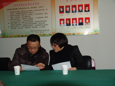 公司运营中心总监卢一奇与金华启明学校校长张根梅交流