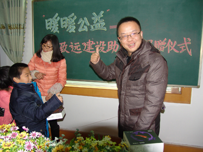 公司运营中心总监卢一奇代表公司对张根梅校长的工作表示敬意,并表示助学是我公司长期支持的一项公益活动,这也是一个有社会责任感的公司应尽的义务,并对张根梅校长在助学工作中积极配合表示感谢。
