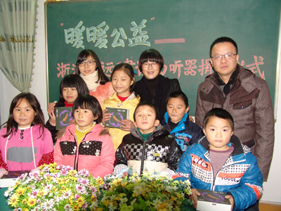七名受助助听器的学生看上去很是可爱,他们表现相当兴奋,努力做出一个好孩子的姿态。在公司运营中心总监卢一奇授助每一学生助听器的仪式上,每位残疾学生都会用他们的特殊方式来表示感谢。看着这些可爱的学生,衷心地希望他们在大家的帮助下,在整个社会的关怀下,能快乐地成长,尽快成为一个对社会有用的人。