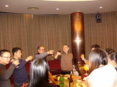 公司总经理赵肖春举杯向在座的女同胞敬酒