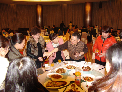 赵总为每桌的女同胞敬酒