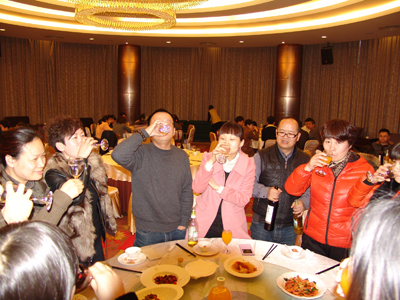 接着,公司总经理赵肖春举杯向在座的女同胞敬酒,祝女同胞们节日愉快!晚宴进入进行时。