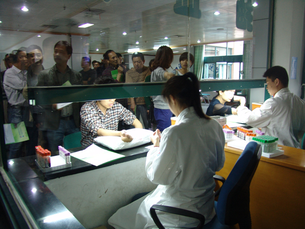 这是发生在广福医院体检中心前台服务处的一次简单对话,原来在2014年5月20-21日这两天,公司集中组织员工在广福医院体检中心进行健康体检,有二百多人参加了体检。此次体检在去年体检的基础上增加了多项检查项目,如生化系统项中增加了胆固醇、尿酸、血清总蛋白、肌酐、尿素测定、钾钠氯钙微量元素等检查,男性还增加了输尿管膀胱前列腺检查项目,女性则增加了子宫附件和双乳彩超检查项目。