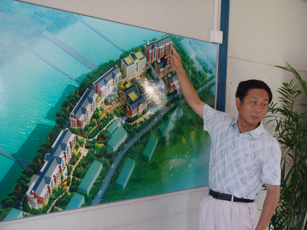 在工地的会议室中,项目建设方负责人、金华市民政局周工对该项目进行了详细的介绍:开发区养老公寓项目工程占地40余亩,原为苏孟乡小学和中学地块,由金华市民政局与金华开发区共同兴建,拟建7幢公寓、600个床位的中高档养老小区,养老小区每幢楼一楼都凌空,以方便老人休息和活动,小区建设划分几个功能区域,有不能治理的老人楼、有夫妻老人楼、有特殊情况老人楼,相对实现动静区分离。每幢楼之间及食堂都有风雨走廊相连,小区内活动不受风雨影响。小区内还配有活动楼、会议楼、医务室、食堂、超市等配套设施,该养老公寓还有一个最大的优势是小区对面就是苏孟乡卫生院,就医条件非常方便。周工的介绍使大家对自身未来养老生活也产生的强烈的兴趣,都说自己的老年如能生活在这样的环境中而欣慰,并笑言能否先预定一下。
