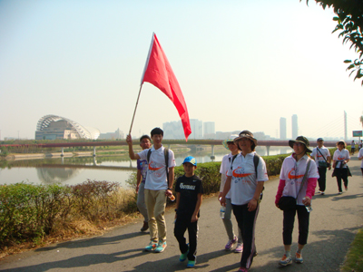 公司毅行队伍经过假日公园