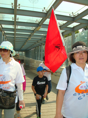 公司毅行队伍通过第一个打卡点