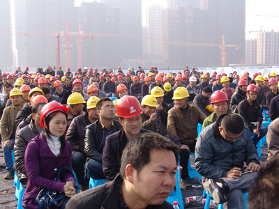 11月14日上午,金华市建设工程土石方开挖阶段扬尘控制现场推进会在欧源晓郡花园建设工地举行,有全市建设、监理、施工单位500多人参加了会议,我公司总工张宝玉和部分市内在建工程项目经理总监参加了此次现场观摩会。