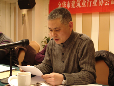 出席大会的有:金华市住房和城乡建设局党委委员孙金荣、建筑业管理处副处长金凌;金华市建筑业行业协会会长吴文亚、副会长吴厚永以及来自各县市(义乌市除外)的17家监理企业负责人。浙江省工程建设监理管理协会秘书长章钟同志应邀出席会议。会议由吴文亚同志主持。