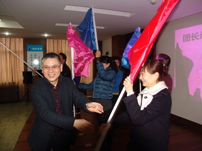 公司总经理赵肖春给各团队授团旗