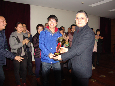 公司总经理赵肖春给冠军团队颁奖