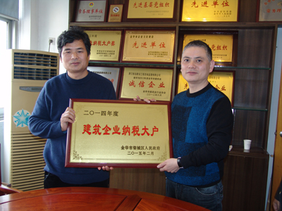 我公司被金华市婺城区人民政府授予2014年度“建筑企业纳税大户”奖