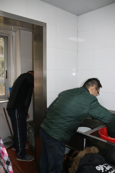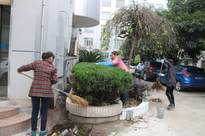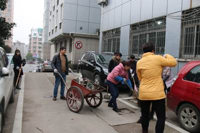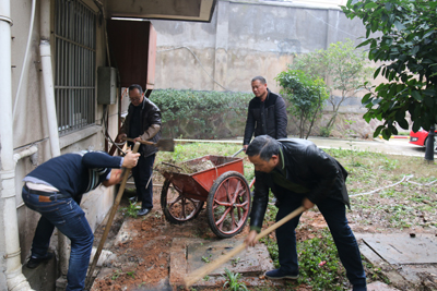 按事前分工,男同志搞公司食堂卫生,女同志搞办公大楼周边卫生。下午2时一到,大家准时来到现场,女同志就在公司办公大楼边马上干了起来,有搬树枝的、有捡垃圾石块的、有扫树叶的、有运垃圾的......。绿化带中的废纸等垃圾由于时间长,已于泥土粘在一起,需要人进去用手一张一张捡起来,而灌木枝条茂密且还有带刺的,许多人的手被树枝划破而浑然不知。有的则不怕脏臭,下到沟渠中,清理出又黑又臭的垃圾。另一边则是在公司食堂内,男同志在胡志云副书记的带领下,不怕脏不怕累,认真清理沟渠烟道、油道、下水道,清理橱柜卫生,清理地面油渍,还清理了食堂外围的沟渠卫生,使食堂卫生焕然一新。
