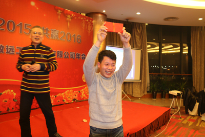 年会在热烈而欢快的气氛中进行,其间穿插“化妆”、“找新娘”、“钻圈”等集体项目活动和抽奖活动,不时出现欢乐高潮。值得一提的还有公司员工吴振兴踊跃上台表演的魔术和脱口秀,赢得了大家阵阵掌声,为年会增添了不少欢乐。在年会进行过程中,“致远年会欢乐群”微信群也着实火热,在员工交流分享心得的同时,不时有红包给以激励,抢到红包的自然兴高采烈,没抢到红包的则以言词激励,期待下一个红包的再度来临。