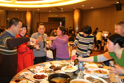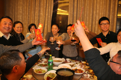 年会中,大家边吃边观赏节目边抢红包,过了一段非常HAPPY的美好时光。