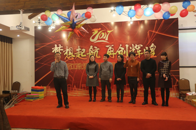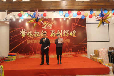 年会在主持人的新年祝福中拉开序幕,随后,公司新的领导团队集体亮相,卢一奇总经理代表新领导团队作了表态,将众志成城,共创“致远”新的辉煌。