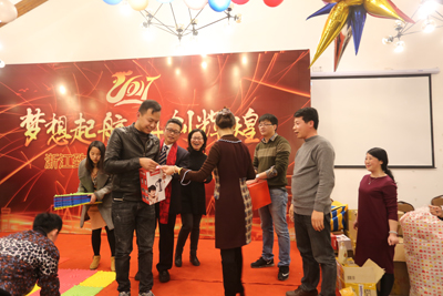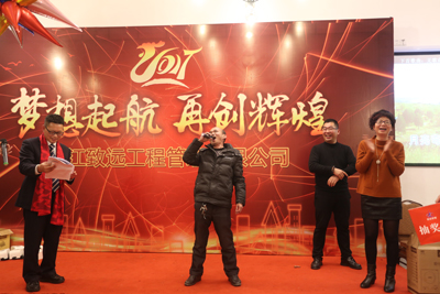 年会在热烈而欢快的气氛中进行,其间穿插“抢占先机”、“机智过人”、“机不可失”、“费尽心机”等集体游戏项目和“金鸡贺岁”、“心手相连”、“明天会更好”、“阳光总在风雨后”等歌舞节目以及实物和现金红包大抽奖活动,现场不时出现欢乐高潮。项目总监李仕凡的一首“跑马溜溜的山上”伴着四川南充乡音更让全场嗨翻了天,为年会增添了不少欢乐。在年会进行过程中,“致远年会欢乐群”微信群也着实火热,祝福声、感谢声、欢乐声,声声在翻屏。