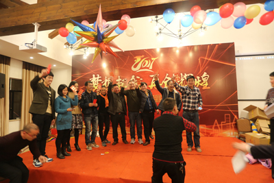 元月13日晚上,公司年会在百老汇江北店鸿运厅举行,有公司总部人员、项目总监、分公司、办事处、合作伙伴等百余人参加。