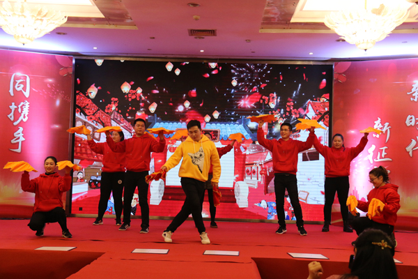 年会在热烈而欢快的气氛中进行,其间穿插节目表演、表彰、游戏、抽奖等环节,环环相扣,让人在品尝美食的同时也享受了一场视觉盛宴。节目表演有咨询部的舞蹈〈咱们屯里的人〉、企管中心情景剧〈齐心协力〉、金华市科技文化中心项目部诗朗诵〈中国梦,我的梦〉、运营中心独唱〈月半小夜曲〉、总工室小品〈奔向BIM时代〉、公司管理层合唱〈感恩的心〉等;表彰项目有:2017钱江杯、双龙杯、省标化、市标化、省优秀园林、优秀团队、优秀总监、优秀员工、优秀通讯员、先进个人、先进后勤等;游戏有:叠纸杯、音乐辨唱等。年会期间还有实物大抽奖和微信红包活动,现场不时出现欢乐高潮。而即兴的魔幻服装表演则让人笑声不断,为年会增添了不少欢乐。