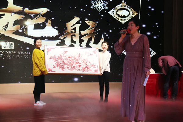迎新晚会在欢快喜庆的锣鼓声中徐徐拉开帷幕。精采的文艺节目让观众大饱眼福,丰盛的美味菜肴让员工大饱口福,穿插的互动游戏让参与者收获满满,期间的抽奖环节更让人热情高涨。旗袍秀、舞蹈《海草》、现场剪纸太极表演、诗词颂《短歌行》、独唱《遥远的她》、相声《我们的2018》等节目精彩纷呈,展现了致远人激情、活力、青春、积极向上的精神风貌和对美好生活的向往,现场气氛不时出现欢乐的高潮,带给人们以美的享受。两幅剪纸画的拍卖,将晚会推向一个新的高潮。一幅是剪纸成品,一幅是当场剪纸作品,经拍卖师给出起拍价800元后,争夺拍品的叫价声此起彼伏。经过多次激烈的竞价,分别以1.7万元和1.5万元被两位有识之士所得,剪纸所拍卖的钱则全部捐献给了公司慈善基金,表达了致远人的拳拳爱心与社会责任担当。