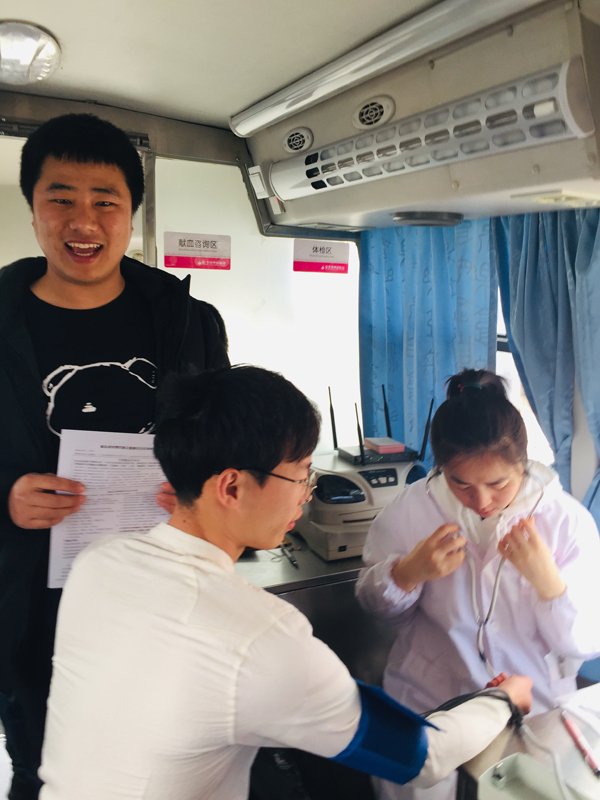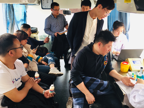 为积极响应无偿献血活动,致远公司通过微信群进行动员时,员工报名非常踊跃,党员郑国建雷打不动要求第一个报名参加,有的员工因工作时间冲突,则于上门采血服务前抽空到血站献了血,更有因报名献血人员身体原因不能献血时,不顾白发年事高,毅然决然要求替补献血,并推销说自己的纯天然血无污染,后经采血人员检测,血样符合要求,很开心地献了血。