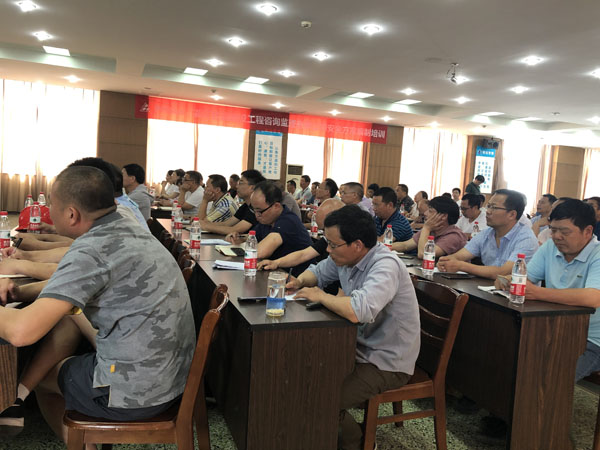 宋昂老师以其丰富的经验,并结合工程安全生产形势,以PPT形式图文并茂讲解了钢管扣件式支模架、工具式支模架(轮扣式、盘扣式,碗扣式、门式,键槽式)等不同形式模板支架基本知识及材料特性、危险性较大的模板工程专项施工方案编制方法、危险性较大的模板工程专项施工方案监理审核方法及要点、模板工程监理验收注意事项等内容。培训会场秩序井然,听课人员个个神情贯注,取得了良好的培训效果。