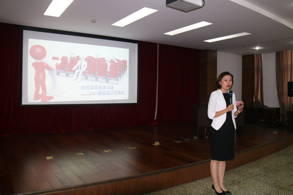 2019年5月31日,《如何实现高效沟通――演讲与口才培训》在公司九楼会议室举行,由时代光华管理学院高级讲师徐枫授课,公司近50余人参加了培训。为了加强培训效果,会场培训人员分8个小组落座,以便分组PK。徐枫老师从情压管理、有效表达、语言结构的设计及演讲状态的调整、演讲内容的架构、演讲风格和表达策略等方面的讲述来表达实现高效沟通的有效途径。徐枫老师时而侃侃而讲,时而与学员交流,时而让学员互动,使课程丰富有趣有味,让学员在不知不觉中得到了训炼。