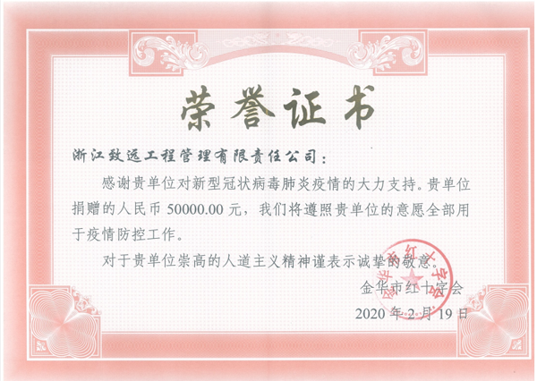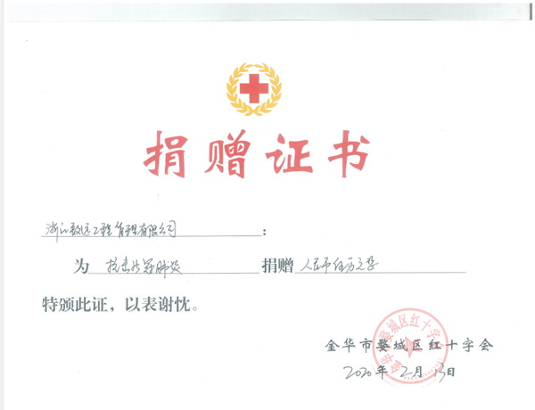为积极应对新冠肺炎疫情,携手打赢疫情防控阻击战,我致远公司分别于2月11日、12日通过红十字会定向捐款金华市中心医院10万元,用于购买抗击疫情物资和设备,尽企业一份微薄之力,为一线医护人员提供支持,共渡难关。