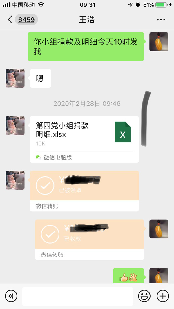 疫情就是命令,防控就是责任。疫情期间,致远党员干部员工在做好防疫工作的同时,积极投身到抗疫一线,筑起疫情防控的铜墙铁壁。致远支部的党员们在支部微信群发出充分尊重党员意愿、坚持自觉自愿、量力而行原则捐助抗疫一线的倡议下,个个踊跃报名捐款,在短短的二个小时内四十六名党员全都献上了自己的一份爱心,切实发挥了党员先锋模范作用,充分地弘扬了“一方有难,八方支援”的中华民族传统美德,也体现了大家众志成城战胜疫情的坚定信心与决心。