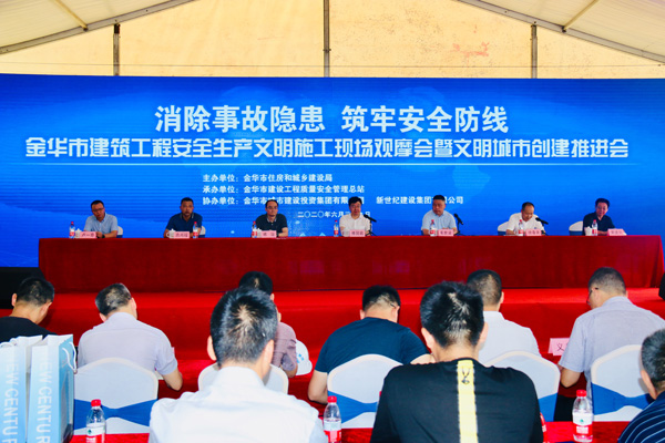与会人员还观摩学习了金华亚运分村项目施工现场隐患排查双重预防机制实施、应急处置方案演练、盘扣式外脚手架和模板支撑系统定型化运用及规范化、标准化、精细化、智慧化工地建设,文明工地管理助力全国文明城市创建的一些做法和经验。今年6月是全国第19个安全生产月,也是金华文明城市创建国测关键之年。本次会议主题是“消除事故隐患、筑牢安全防线”,旨在进一步规范提升施工现场隐患排查治理能力,进一步规范提升施工现场保障能力,进一步规范提升标准化智慧化管理水平,提高安全生产意识,全力推进文明城市创建。