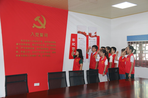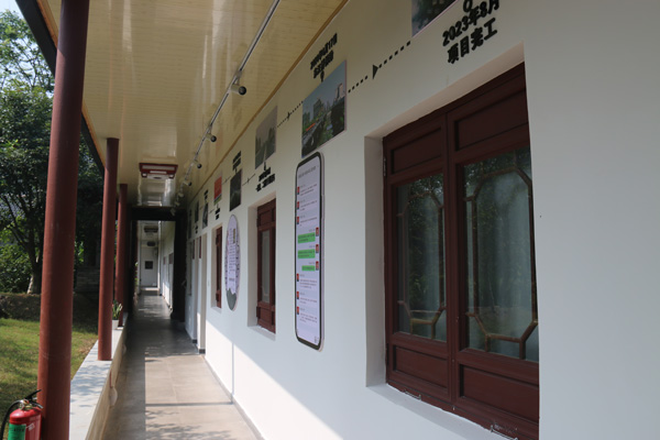 在义乌市机场路立交化改造工程项目监理部,映入眼睑的是古色古香的仿古园林式建筑,曲径回廊,诗情画意,能在这样的环境工作,哪怕再辛苦也值。碰巧的是今天刚好是该项目党支部开展主题党日活动,我们也有幸观摩了他们的党日活动仪式,深感庄严与自豪。走廊的两旁,贴满了党建标语和项目党建活动的照片,给人以满满的正能量。