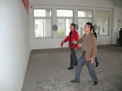 虽然外面小雨霏霏,活动室内却热闹非凡。有夹弹珠的、有投掷飞标的、有打乒乓的、有双“狮”送球的……。真是男女老少齐上阵,欢歌笑语满园春,好一幅和谐邻里图。我公司组织16人参加了此次比赛活动的所有项目,在团体赛“多人跳绳”和“袋鼠跳”两个项目中,我公司都获得了第二名的好成绩,充分体现了我公司员工顽强拼搏的精神和团结协作的良好风貌。